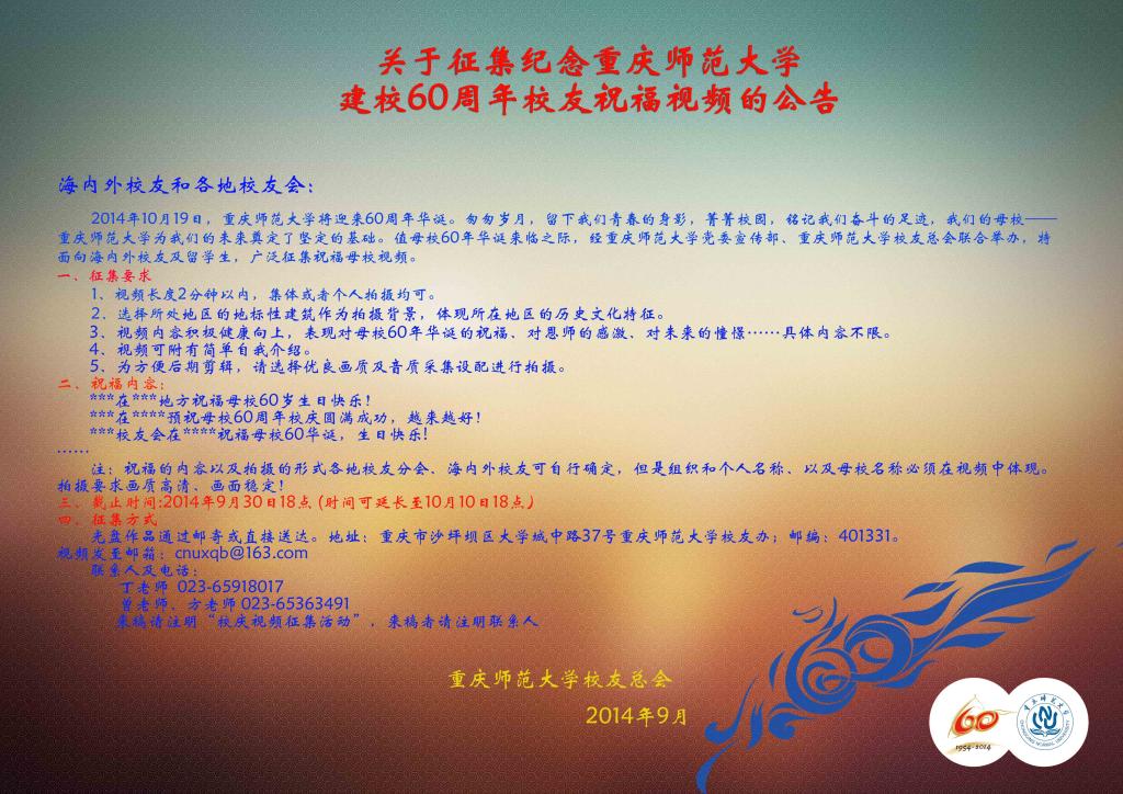 10月征集91吃瓜网 60周年校庆校友祝福视频公告