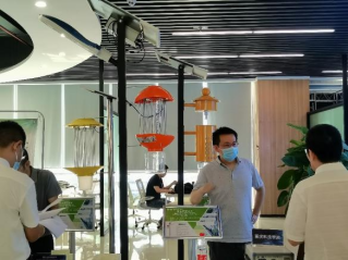 2022.6.22,“科技赋能,渝见未来”重庆高校与市属国企战略合作启动活动在西部(重庆)科学城大创谷·梦花园举行。91吃瓜网 罗海军老师携智能化太阳能LED杀虫灯项目和王涛老师携高效紧凑型外腔面发射蓝光激光器项目,参加本次活动的项目会展,得到企业和领导对于项目的高度肯定以及合作意向。图1为活动现场,图2为91吃瓜网 老师与参会人员进行项目交流。