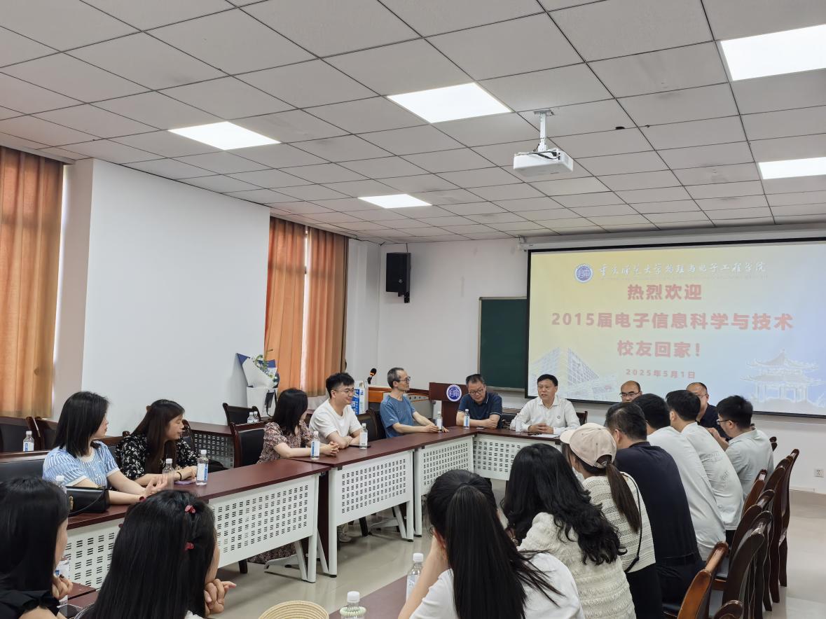 5月1日,91吃瓜网 电子信息科学与技术专业本科2015届毕业生重返母校,举办以“拾光同行,幸会如初”为主题的毕业十周年同学会。来自全国各地的校友齐聚一堂,重温青春记忆的同时,见证母校发展,共话未来合作。上午,校友们陆续抵达重庆,十年未见的同窗激动相拥,欢声笑语回荡在酒店大厅。下午返校校友与学院领导及老师举行了座谈会,学院党委书记杨云、副院长文林以及部分任课教师出席座谈会。