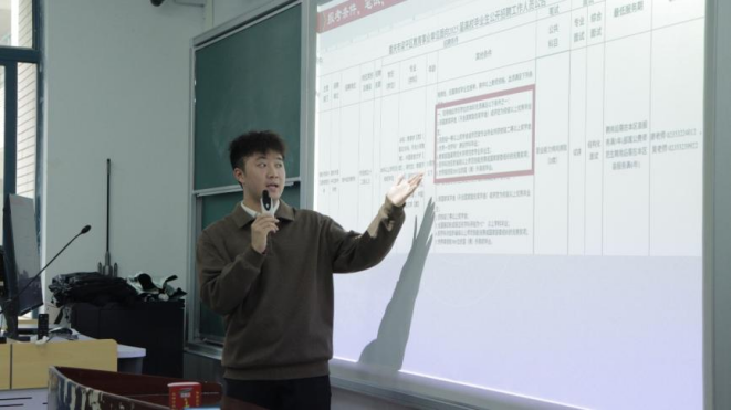 陈翔校友聚焦师范生专业成长与职业发展,系统介绍了师范生技能大赛的备赛经验和学院提供的指导资源。他结合自身参赛经历,生动讲述了自身从初次登台紧张忘词到最终荣获佳绩的成长过程,强调了教学实践能力提升的重要价值,鼓励新生以赛促学、以赛促教。