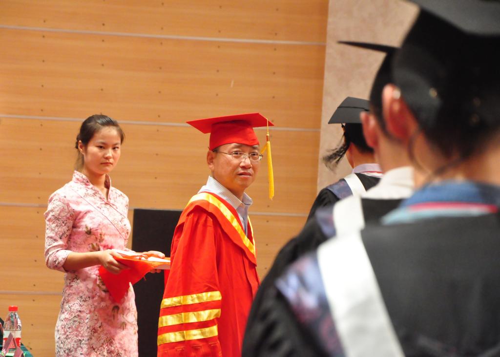 党委书记唐敏宣布了授位决定以及授位名单。随即授位仪式正式开始了,院长崔玉亭为2015届毕业生颁发学位证书,并拍照留念,每位毕业生下台前都对崔院长鞠躬致谢,以此来表达学院老师对他们辛勤培育的感谢。