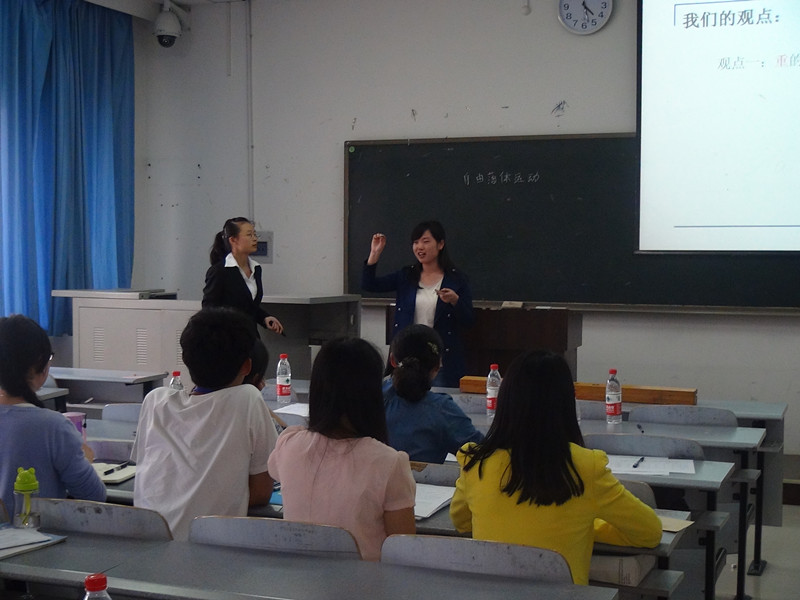 通过前期的初赛、复赛,9名同学脱颖而出进入了此次的决赛。活动一开始,主持人介绍了详细的比赛规则以及评分标准。紧接着,选手们的即兴演讲正式拉开大赛帷幕,比赛要求选手在三分钟内用简练的语言阐述自己对同一个教学问题的看法。大家的观点一个比一个有说服力,赢得了场下一片片掌声。演讲完毕之后,选手们开始模拟授课——十足的教师范儿加上结构严谨、层次分明、条理清晰的教学内容,在场的每一位学生和评委都惊叹“三尺讲台”上的出色表现。选手们结合实际生活、配以ppt演示将“牛顿第一定律”“电容器”“楞次定律”“自由落体运动”“全反射”“电阻定律”等知识轻松自如地传授给学生。另外,在授课过程中,选手们与在座观众共同完成的简单小实验更是为课堂模拟注入几分生动与活力。