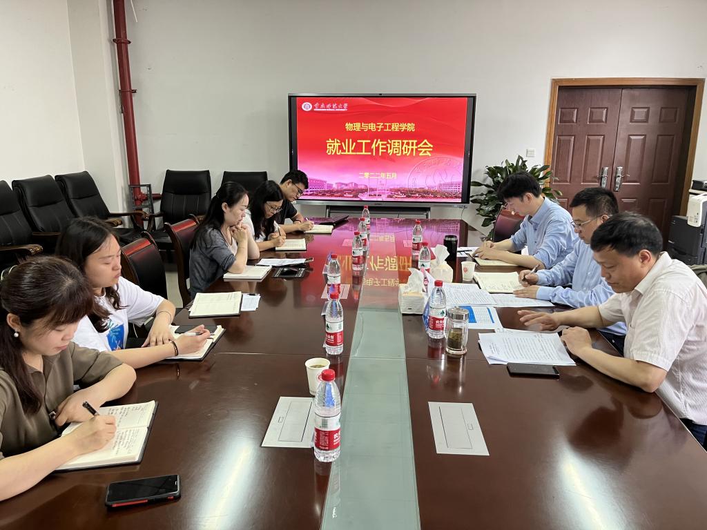 院党委书记杨云从考研指导、就业推动、访企拓岗、全员参与等方面介绍了物电学院就业工作。副院长余鹏就学院人才培养、学科建设、研究生就业等工作进行了汇报。院党委副书记曾艳就2022届本科毕业生就业现状及下一步工作措施进行了汇报。