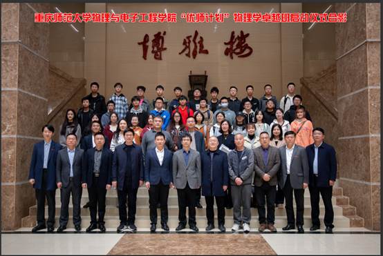 附属中学书记张忠俊,重庆市南渝中学副校长李先全,物电学院领导班子及部分教师代表,2022级物理学优师班学生参加了启动仪式,活动由物电学院党委书记杨云主持。