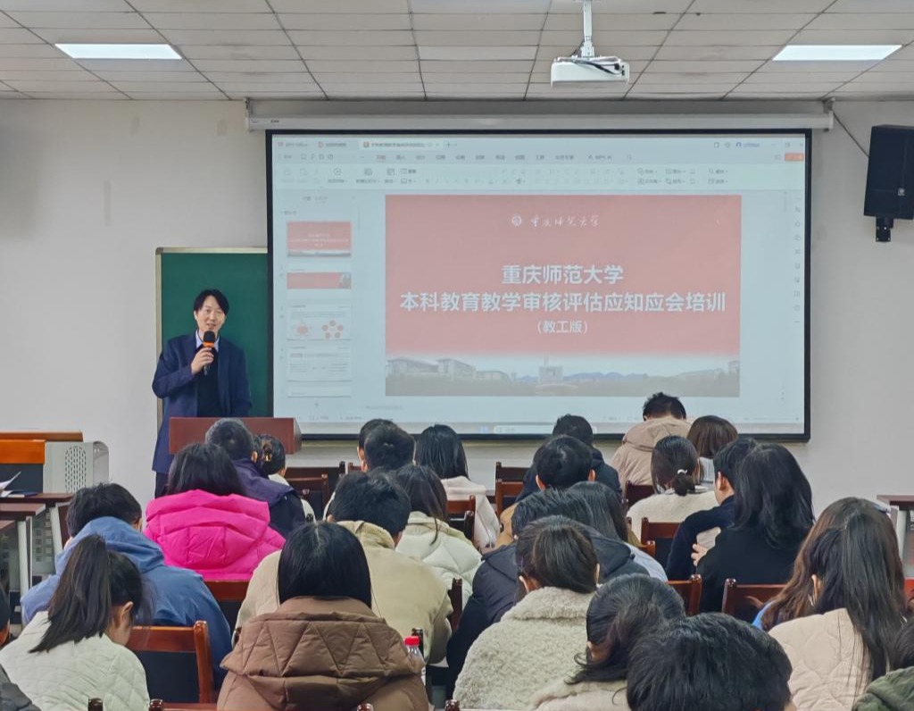 在集贤楼511会议室召开本科教育教学审核评估工作专题培训会,会议由院长余鹏主持,副院长罗海军主讲,学院全体教职工参加。