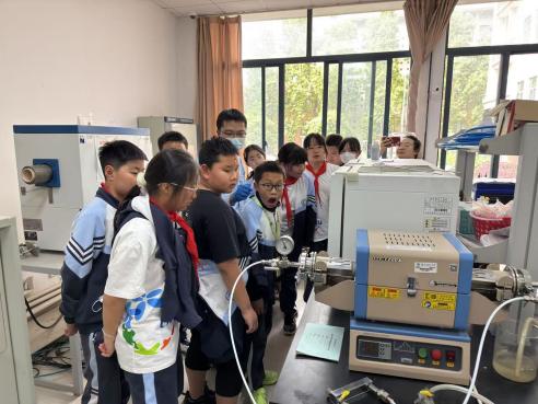 实验楼参观。实验楼外空地上,无线调频话筒、电磁炮等各类趣味实验,帮助学生理解电磁感应、信号处理等知识;实验楼内同样精彩纷呈,一楼的实验室里,学生通过扫描电子显微镜窥探微观世界,在激光实验室揭开了激光奥秘,不仅让同学们了解了OLED发光芯片制作过程,还能学习电子电路、材料制备等多样知识;二楼的计算模拟实验室、激光成像实验室以及展示创新科技成果的多个实验室,为学生打开虚拟研究大门并普及前沿科技知识;三楼充满互动体验乐趣,模拟触电仪、无皮鼓等互动装置,让学生在体验中学习电流特性、导电原理、磁场等知识,全方位展现科学的魅力与奥秘。