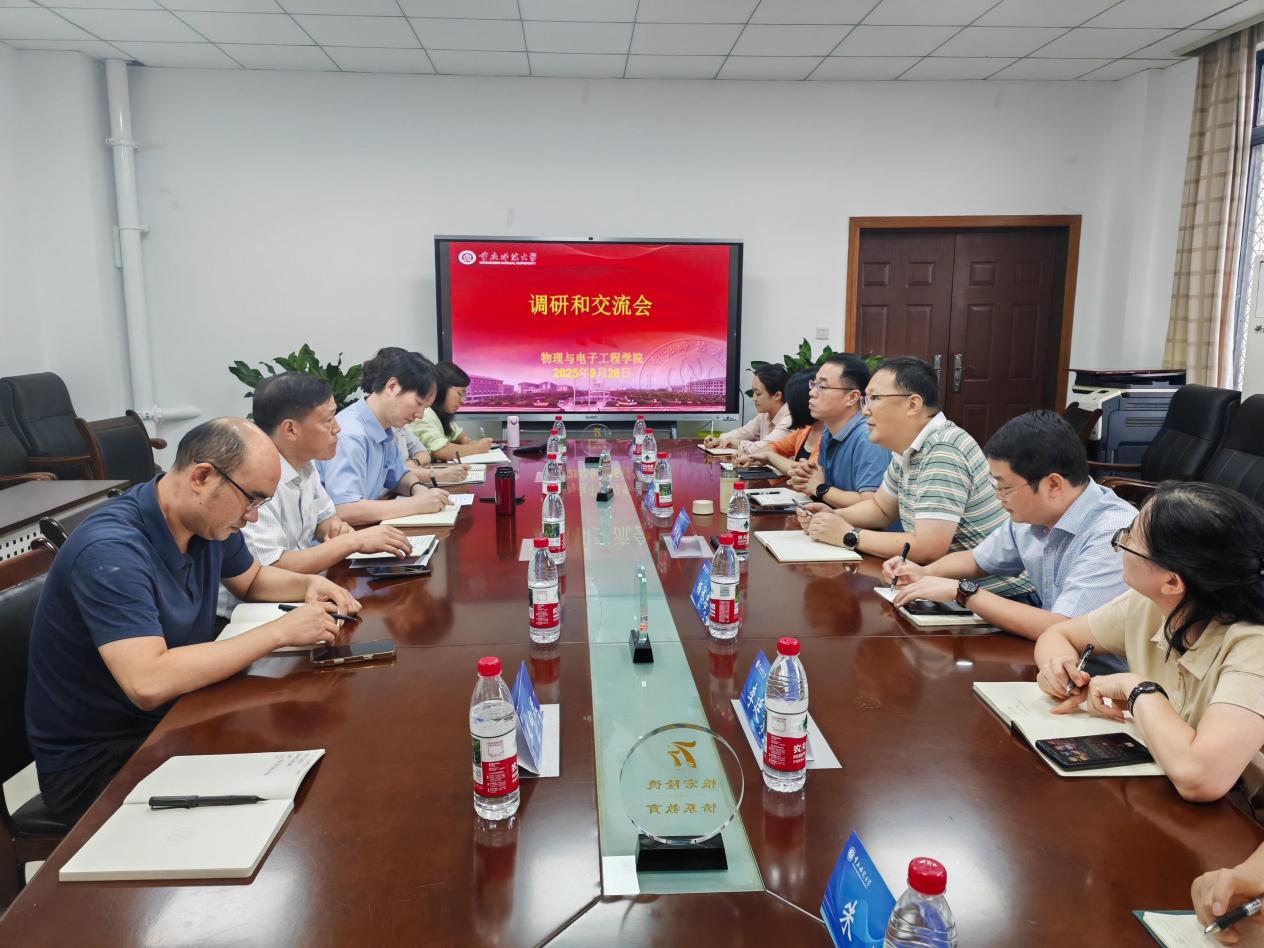 开展调研交流。物电学院党委书记杨云、院长余鹏及党政领导班子参加了座谈交流,会议由物电学院党委书记杨云主持。