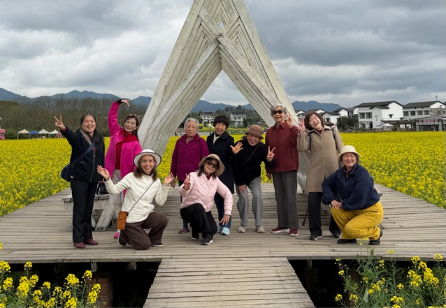 退休老师们对学院的悉心安排与暖心关怀深表感谢,乘车途中欢声笑语、兴致勃勃,满怀期待奔赴春日美景。抵达璧山七塘莲花穴后,千亩油菜花海绵延如画,金灿灿的油菜花随风摇曳,处处洋溢着蓬勃生机。大家漫步田间步道,徜徉花海之间,驻足打卡留影,欣赏醉人的春日风光,在自然美景中舒缓身心、增进情谊。