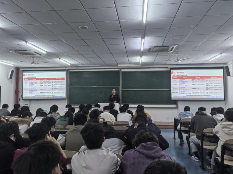 罗海军副院长聚焦电子信息专硕展开讲解,深入分析考研招录形势,强调学校招生优先保障第一志愿,学院多个专业已不接收调剂生,提醒学生理性评估实力、科学制定报考目标。介绍了电子信息专硕涵盖脑机接口、量子传感等前沿研究方向,专业发展贴合重庆地方产业集群需求,相关领域就业缺口大,毕业生多进入华为、京东方等企业从事研发工作。同时,罗海军副院长给出备考建议,指出数学是考研关键科目,需确保过国家线,考研最后三个月要提升复习效率,并根据复习情况动态调整报考目标;建议学生积极参加专业竞赛,提升实践与综合素养,为复试和就业积累优势。