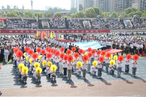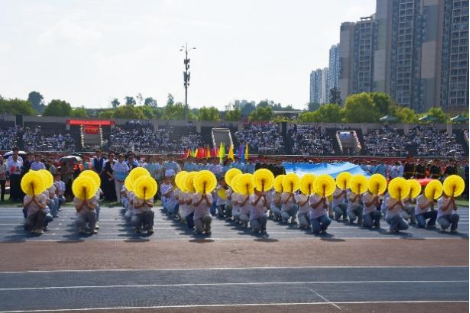 方阵通过红黄翻花变换阵型,巧妙拼出“CQNU 物电”字样,“格物致知,力争上游;电驰千里,光耀赛场”的口号铿锵有力,尽显物电风采。