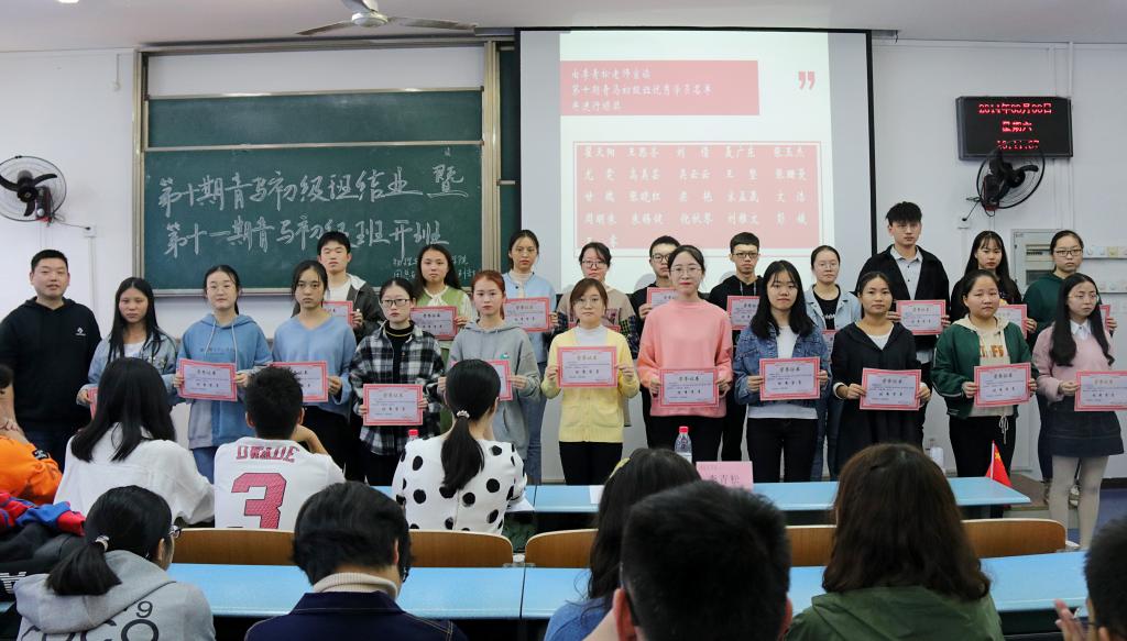第十期青马初级班结业暨第十一期青马初级班开班仪式在大学城校区弘德楼(15302)举行,学院党委副书记曾艳、团总支书记李青松及各年级辅导员出席活动。