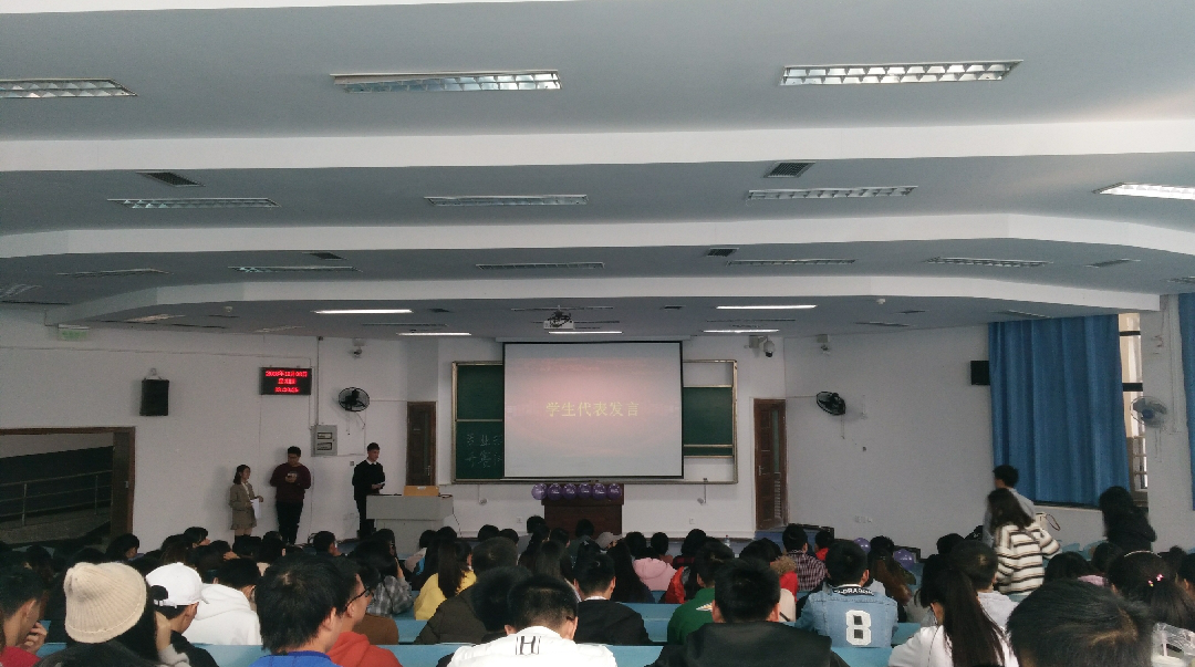 然后是优秀学生代表发言,高鑫同学呼吁大家学无止境,要在一次次比赛中有所获、有所得,要一刻不停息加油努力;邹佳俊同学呐喊青春无悔,奋勇拼搏,告诫大家“莫等闲,白了少年头,空悲切”。