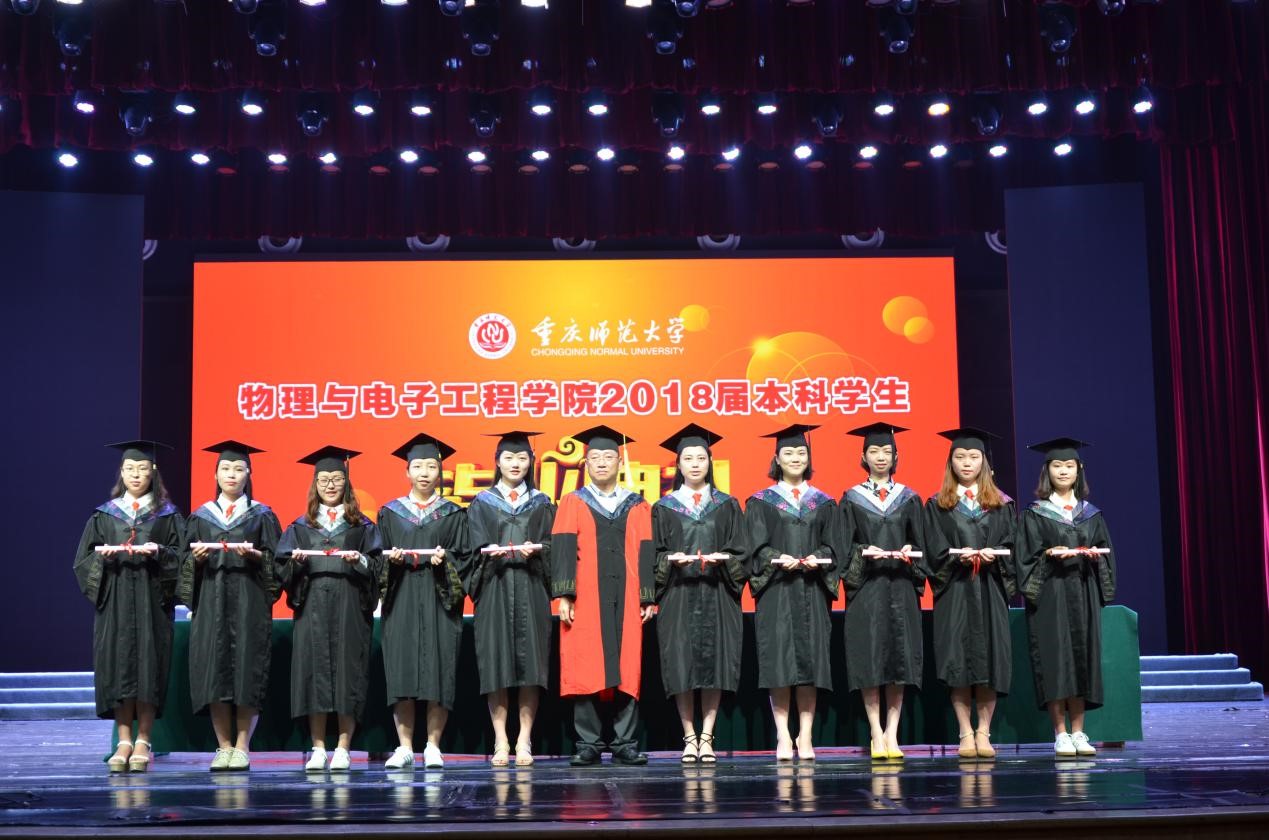 毕业典礼在同学们的温馨回忆中开始。由14级同学们亲手制作的毕业典礼视频,回顾了一路走来的大学生活,印证了同学们的精彩瞬间和成长经历,点点滴滴,历历在目,表达的是物电学院全体师生给同学们未来的良好祝愿和殷殷期望。紧接着,校友会堂报告大厅四周响起了嘹亮的歌声,歌声唱响的是青春,唱响的是这四年来大家共聚一堂的陪伴。典礼开始,曾艳书记为大家主持,胡先成教授宣布了2014级全体毕业生名单,副院长曾毅教授宣布了授位决定,学院院长崔玉亭教授依次为同学们进行了神圣的授位仪式。或许来自不同的地方,或许性格有着极大差异,但在物电学院这个大家庭里,同学们都相聚一起,在这里只有温情,只有陪伴。在这即将离别的前夕,留给大家的都是欢快的回忆,即使岁月流逝,时光也带不走执着的梦,即使天各一方,距离也切不断永恒的校友情。