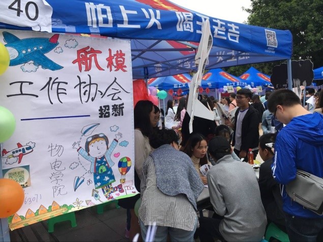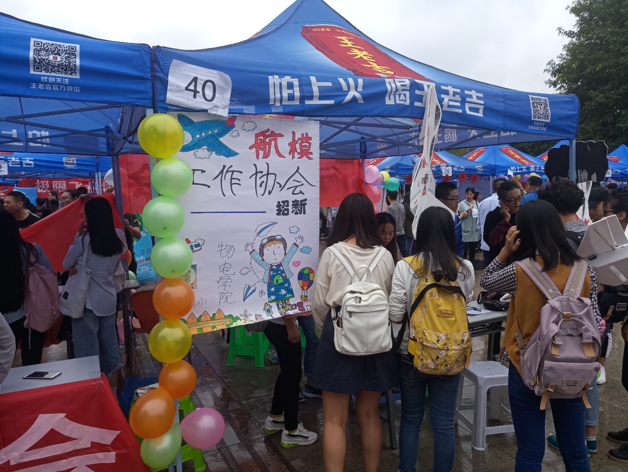 的六大协会竭力展示自己的社团文化和特色。“风里雨里,物协等你“,物理协会用一片赤诚吸引一批又一批同学前来观摩了解;”天道酬勤”四个苍劲有力的大字无不诉说着书画协会成员的执着追求;空中自由翱翔的航模是全体航模人对于天空的向往;无线电协会用自己的作品展示着自己的底蕴;“创业”,追随时代发展的名词,而时代创业协会面向未来,浅谈大学生职业生涯规划;当然了,作为五星级社团,师能素质协会的每一位成员都是为人师表的模范。