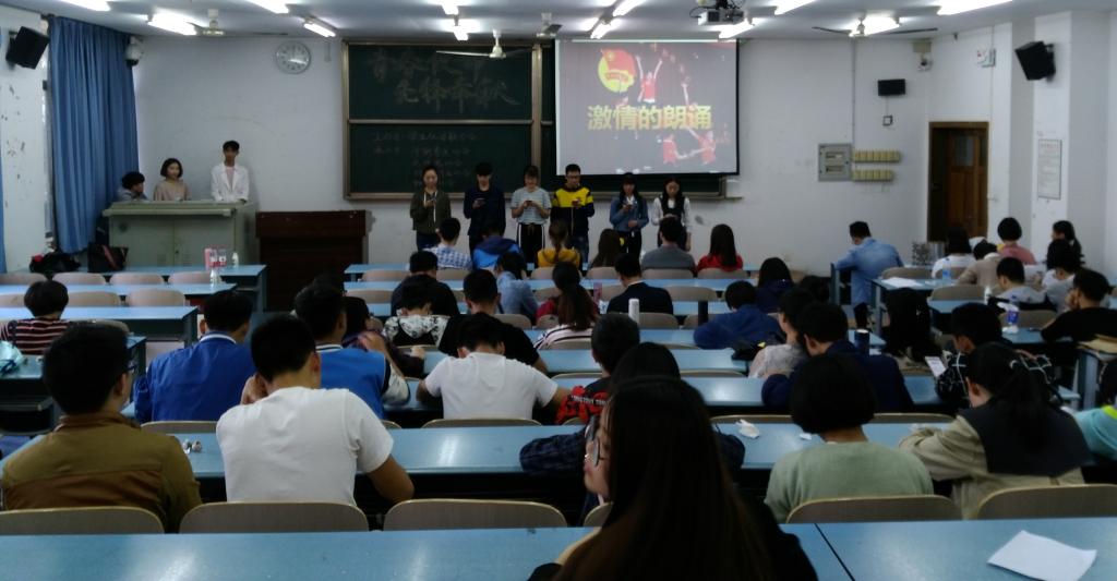 活动开始,物电学院学生会书记郑杰发表讲话,他指出本次活动主要目的是为继承和发扬五四精神,共青团组织思想以及教育渠道的作用,并且希望通过此次活动,激发团员对祖国的热爱。他还强调共青团坚持党的坚持、坚持立足根本、坚持服务青年、坚持问题的导向与有效的改进作风,也预祝本次活动圆满成功。随后,优美动听的《不为谁而做的歌》点燃全场,慷慨激昂的诗歌朗诵完美的诠释了五四精神,丰富多彩的娱乐游戏将气氛引入高潮。活动最后,社联团工委书记潘蓉总结致辞,她表示今日的活动很成功,不仅内容丰富多样,而且还给人以教育意义,令人印象深刻,同时,也希望大家能继续在文化的传承中肩负使命,在青春中绽放光彩。
