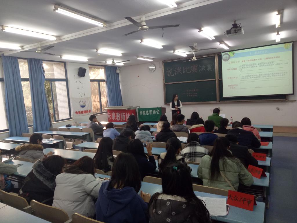 社团联合会主办、未来教师协会和师能素质协会承办的说课比赛于12月8号14:30在弘德楼15202举办的决赛正式开始,此次比赛是给选手一个分享教学方法的平台,亦是给观众一个学习他人教学方法的机会。