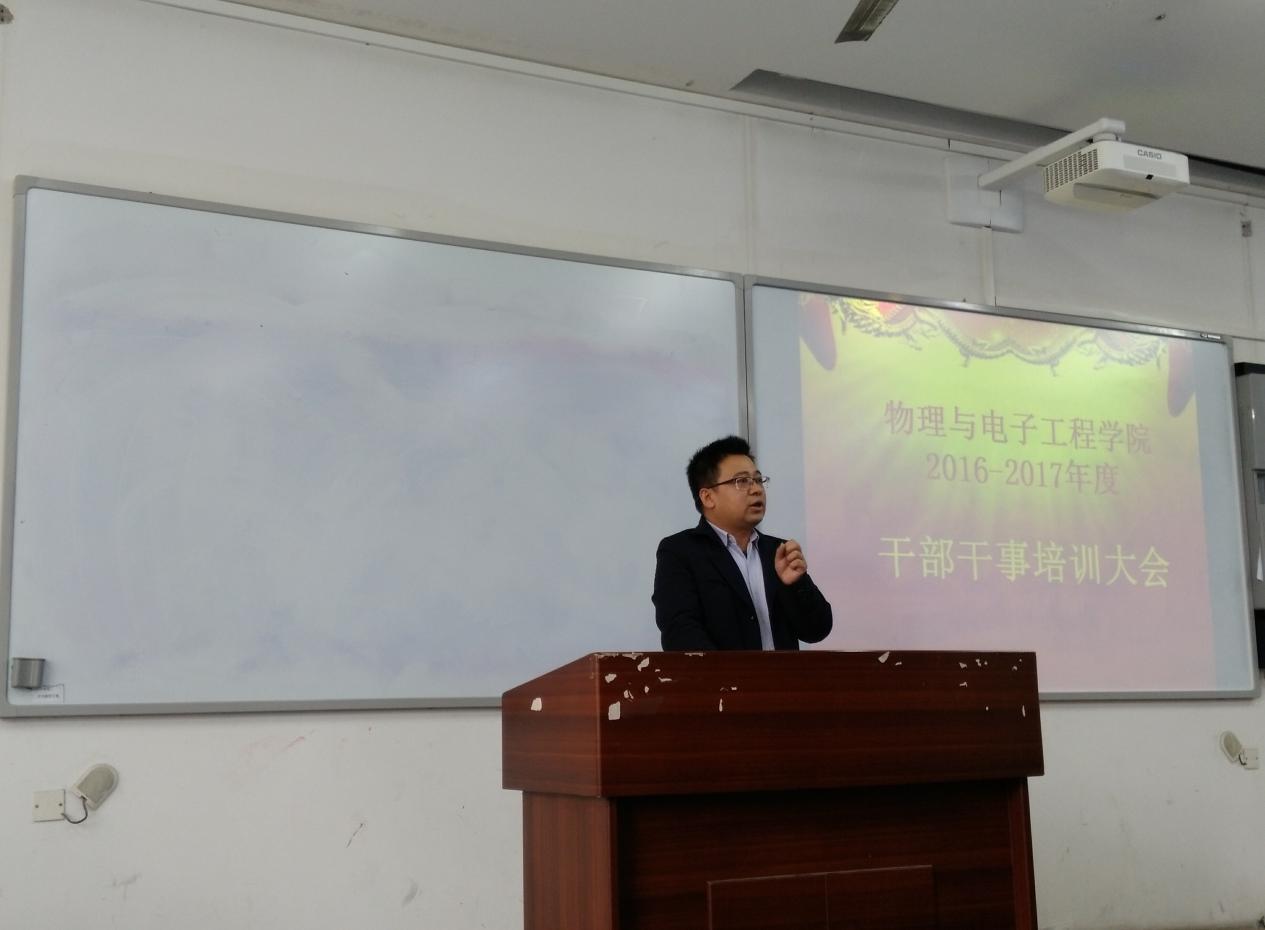在弘德楼15204举办了物电学院学生干部干事培训大会。物电学院党委副书记冉久飞、辅导员邓娜老师、余海蔚老师、陈禹辛老师出席本次大会,物电学院学工办主任李青松主持召开。