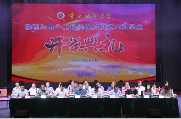 于校友会堂隆重举办了2016级新生开学典礼。学院党委书记唐敏老师,院长崔玉亭教授,副院长曾毅老师,院长助理冯庆教授,物理系主任余鹏教授,电子工程系主任罗海军老师,光电工程系主任张丁可教授,实验教学中心主任范嗣强老师以及2016级全体本科生导师,学院全体辅导员老师出席典礼,2016级新生与学院学生会部分成员参加典礼。本次开学典礼由学院党委副书记冉久飞老师全程主持。