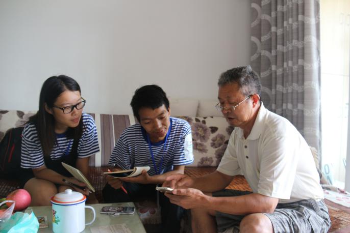 顶着炎炎烈日,志愿者一行人来到了位于丰文社区的李显全老党员家中。一开门,我们就受到了李爷爷夫妇俩的热情接待。通过大学生党员才人平措与李爷爷的交谈,我们了解到,李爷爷今年60多岁,而且当年还是西南大学毕业的高材生,自94年入党以来,一天不落地通过电视网络媒体、微信等平台,关注国家时事热点与党的方针政策,尤其对目前的南海问题有着自己的见解,可谓是一位紧跟时代浪潮的“高素质”老党员。