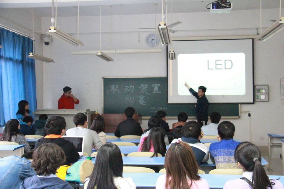 活动主要分团队作品讲解和评委打分点评两个部分。每个队伍一一上台,带着自己精心准备的ppt阐述他们的作品原理,带着自信满满讲解了每一个独特的创意。杠杆原理、化学反应、能量转换等专业知识共同构成了作品设计,展示了同学们丰富的想象力与创造性思维,最后评委对各支队伍的作品进行了详细点评,给予适当的改进意见,并希望能在决赛中看到更完美的装置作品。无线电协会会长方小龙表示:“只要是能积极参加到联动装置比赛的同学,必定是创新型的人才,最后的制作没有大家想的那样困难,你们要相信自己。”