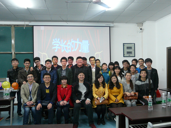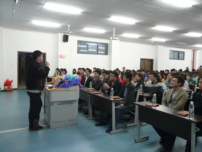 2008级物理学优秀的毕业生专程返校给12级学生作交流,分享自己在在求职、就业、考研过程中的宝贵经验。王老师担任此次交流会的主持人。
