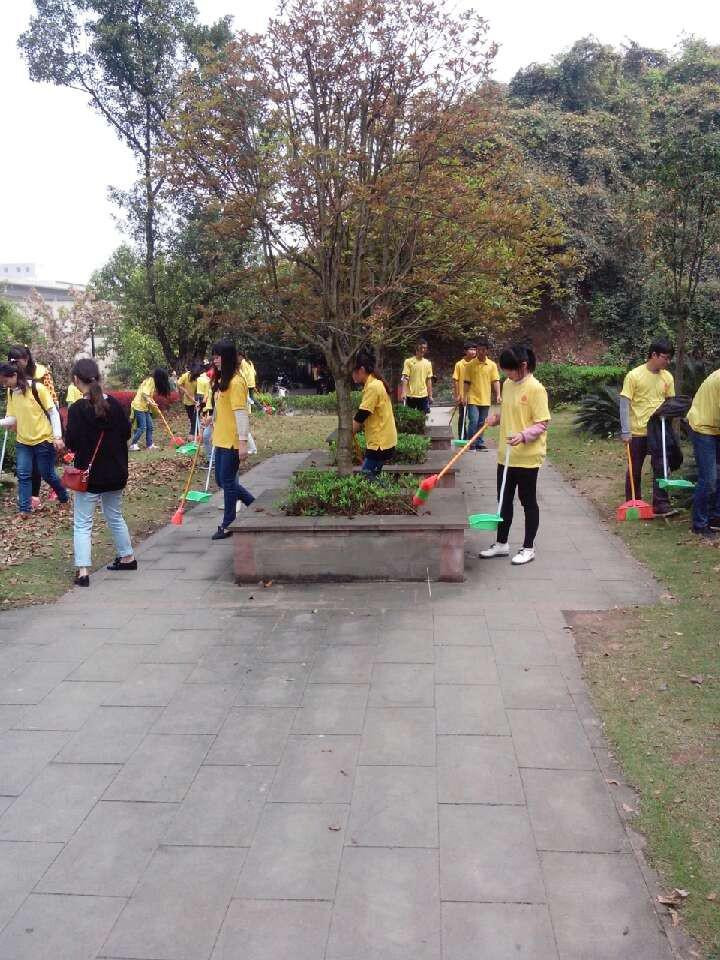 中午12:50,58名志愿者统一身着象征青春热情的志愿者服装来到需要美化的校园部落——商业街小道和弘德楼林荫道。马列部部长何庭智充分发挥学生干部的榜样的力量,带领同学们积极投入志愿活动中。扫帚、簸箕齐上阵,大家秉着不怕脏不怕脏的精神干得热火朝天,将本次的美化活动进行到底:将飘落的树叶捡起,将绿化带中的白色垃圾捡入垃圾筐中,将行人道上清扫干净……活动持续了近1个小时,商业街周围的环境焕然一新。