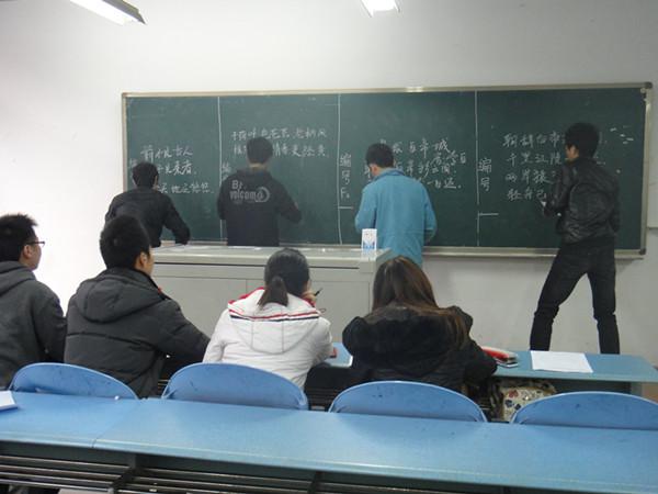 书画协会于2012年11月15日下午1:30在弘德楼四栋三楼举行了院级书法大赛。本次大赛由书画协会和学习部组织策划实施,活动对象主要针对物电学院学生。举办此次活动旨在为弘扬国粹,改善学校的文化氛围,提高同学们的审美素质,培养同学们认识美、发现美、创造美的能力。同时鼓励同学们将有限的课余时间投入到更加积极有益的兴趣爱好中来,并为同学们展现自我风采提供一个平台。