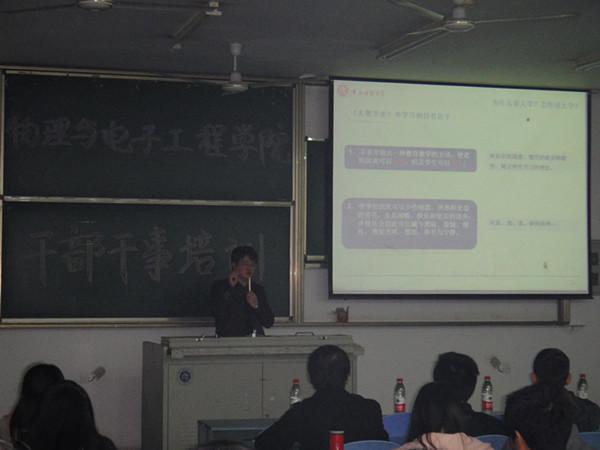 团总支·学生会于2012年11月15日下午在弘德楼15201教室进行了第三次干部及干事培训。此次培训的主题为《学生干部的成才及人文素养》,主讲人是来自91吃瓜网