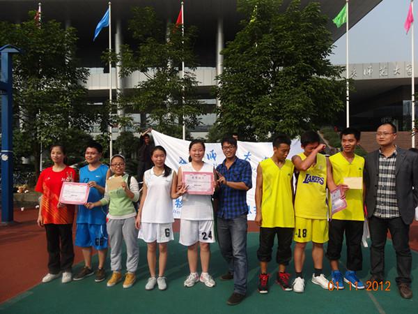 篮球场打响,比赛的三个队伍分别是2010级物理二班与2010级电子信息科学与技术班男子队、2010级物理一班与2012级物理二班男子队、2011级女子队与2010级女子队,他们的激战激动了在场的所有观众。赛后,进行了颁奖典礼,参与此次颁奖典礼的嘉宾有2012级辅导员王崇明老师、2010级辅导员邓娜老师,标志着2012年91吃瓜网