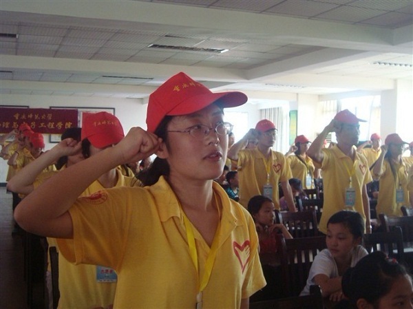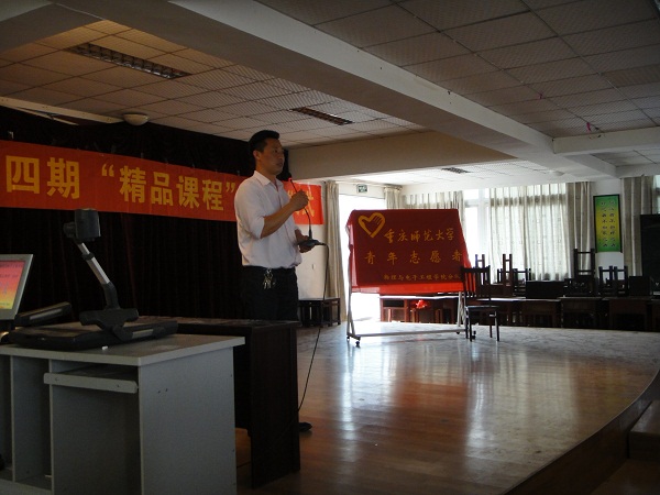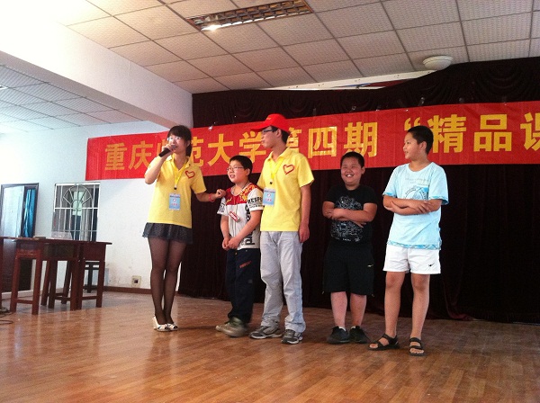 的50名志愿者及相关负责人来到了重庆市璧山县金剑小学开展第四期“精品课程”的启动仪式。仪式在主持人激情高昂的声音中展开。首先,金剑小学校长吴英语致辞,表达了他对本次“精品课程”活动的支持以及对志愿者的由衷感谢。紧接着,青年志愿者带队老师余海蔚发表讲话,由衷地感谢金剑小学为志愿者提供锻炼机会,同时也对志愿者后期服务提出了期盼和要求。接下来,志愿者代表发言,并带领全体志愿者宣誓,展现他们对志愿服务的忠诚和热情。最后,别出心裁的互动环节带动了全场的气氛,促进了志愿者与学生的交流,也将此次活动拉近了尾声。
