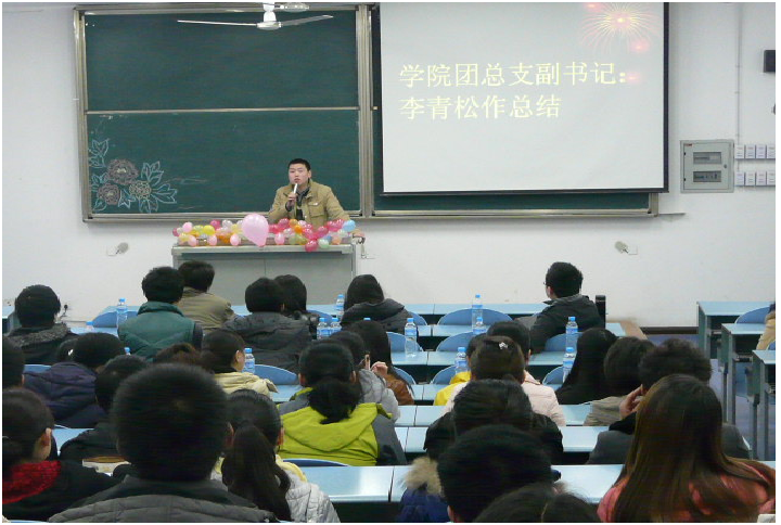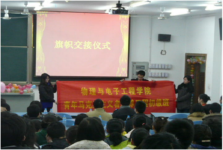 首先党总支副书记冉久飞书记发表讲话,他简明地介绍了“青马工程”的背景以及意义。紧接着,冉书记还为第二期优秀青马学员颁发了结业证书。紧接着,第二期优秀学员吉婷婷、尹质中分享了他们进入青马工程的学习心得。在激昂的共产主义青年团团歌声中,第二期优秀青马学员吉婷婷将青马的旗帜交给第三期青马学员代表黎远望,旗帜交接仪式将此次活动推向了高潮。随后,团总支副书记李青松老师作了总结性的发言,并对第三期青马学员提出新的要求,他希望同学们珍惜来之不易的机会,脚踏实地,志存高远,不断提升自己,争做学生中的模范。最后,所有“青马”人在我校党墙下合影留念,记录下了这一光荣的时刻。