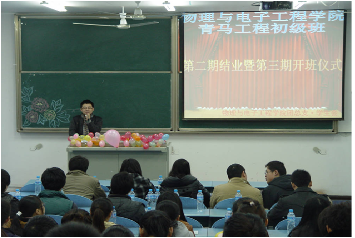 在弘德楼15203教室隆重举行了第二期“青年马克思主义者培养工程”初级班结业典礼暨第三期开班仪式。学院党总支副书记冉久飞书记,团总支副书记李青松老师以及团总支·学生会主要干部等作为嘉宾出席了此次活动。