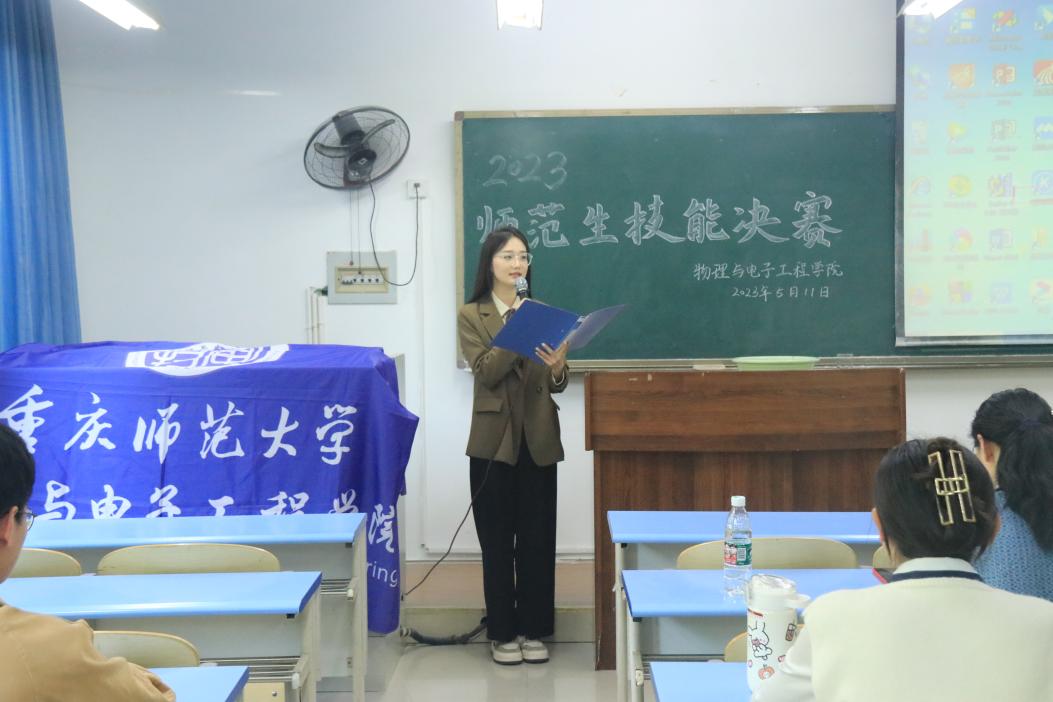 决定在20级、21级本科师范生中开展2023年教学技能训练竞赛活动,并邀请了郑修林副教授、师范生教学比赛指导教师张菊花老师以及重庆一中物理骨干教师李黄川老师担任评委。