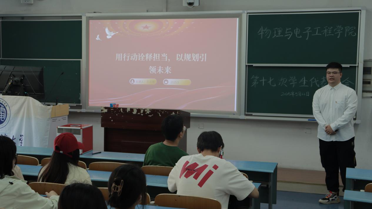 在弘德楼召开第十七次学生代表大会暨2025-2026学年分团委·学生会主席团候选人竞选大会。本次竞选共有4名候选人,全院各年级、各专业70名学生代表参会,辅导员马梓茂老师作为嘉宾出席。