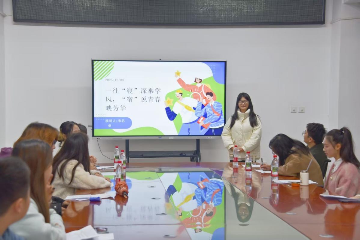 在朗风苑活动室成功举办“一往‘寝’深,‘宿’说青春”主题演讲比赛。十位参赛选手以寝室为情感纽带,娓娓道来青春岁月中并肩成长的温暖故事。