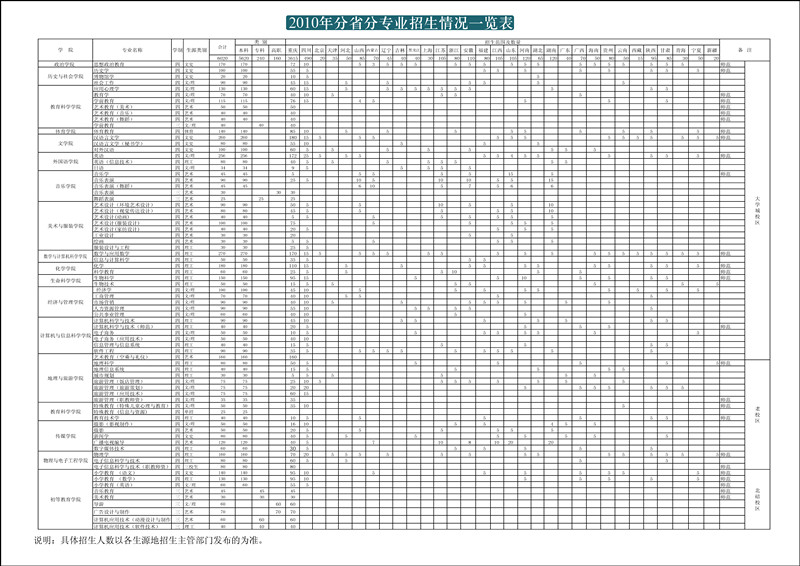 2010年分省分专业招生情况一览表(图文)