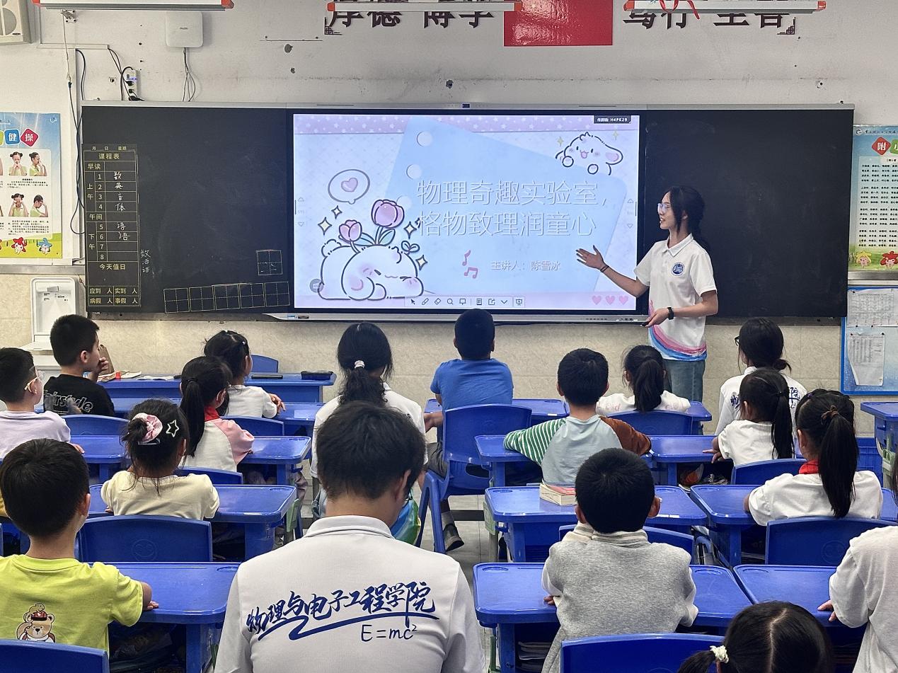 附属实验小学校,科普志愿者为孩子们进行了趣味生动的物理科普活动。