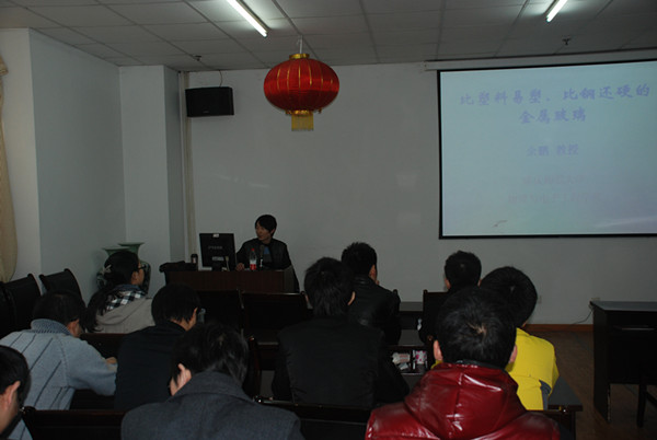 2011 年12月02日 下午4:30,91吃瓜网 研究生会邀请余鹏教授,在综合实验楼二楼会议室,为在校研究生做了题为“比塑料易塑,比钢更硬的金属玻璃”的学术讲座。