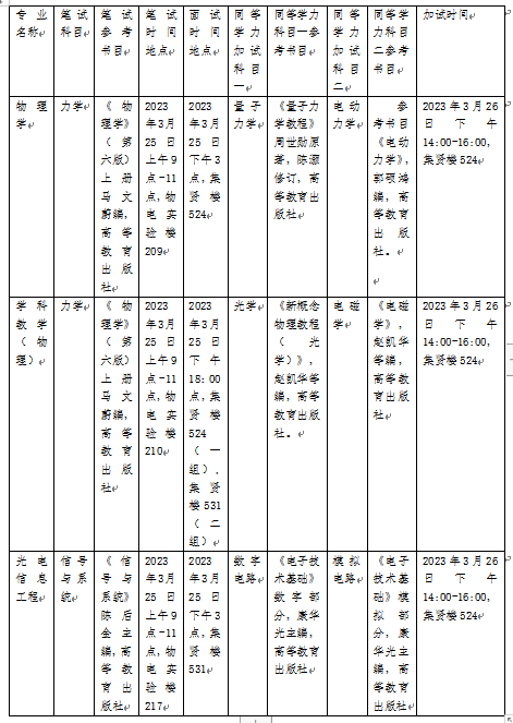 专业笔试采取闭卷方式进行,共考试1 科,考试时间 2 小时,满分为 100 分。试题内容为与报考专业相关的本科主干课程。具体详见附件。