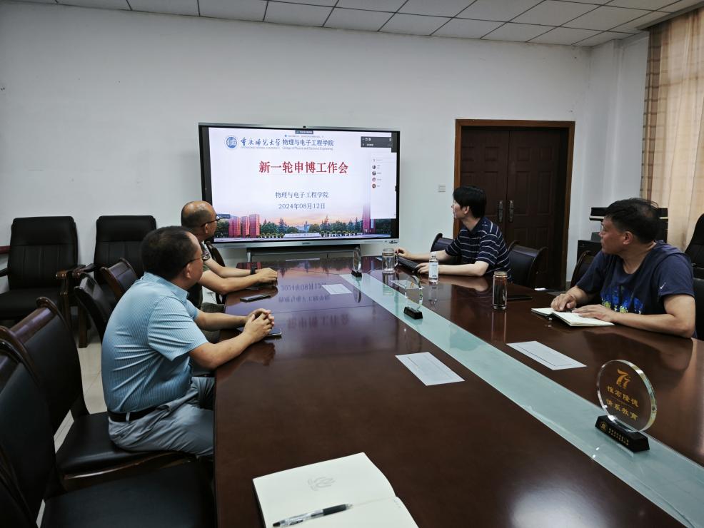 通过线下和线上相结合的方式举行了新一轮申博工作会议,线下会场在大学城校区集贤楼524会议室。学校发展规划处张丁可处长、物电学院党政班子、光学工程专业负责人牛连斌教授及相关学科骨干教师参会。会议由院长余鹏主持。