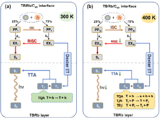 图2 不同温度下TBRb/C60异质结OLED内部的微观机制演化