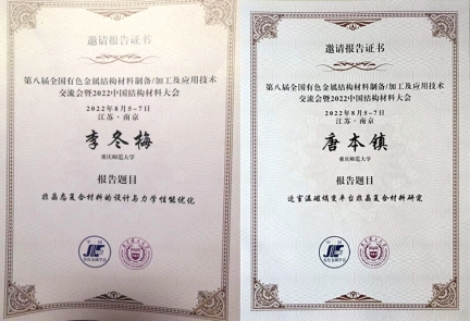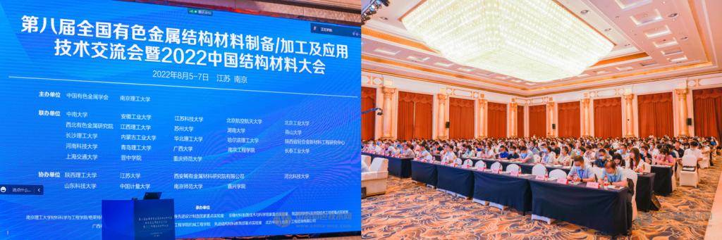 联合主办的“第八届全国有色金属结构材料制备加工及应用技术交流会暨2022中国结构材料大会”于2022年8月5-7日在江苏省南京市召开。余鹏教授为大会联合主席之一,李冬梅副教授为“非晶与高熵合金”分会主席之一。李冬梅副教授做了题目为‘非晶态复合材料的设计及性能优化’的特邀报告,唐本镇博士做了题目为‘近室温磁熵变平台非晶复合材料研究’的特邀报告。