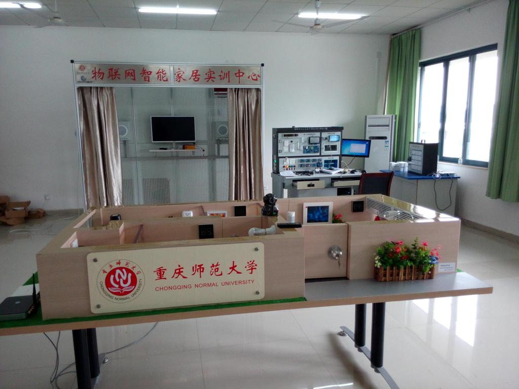 物联网智能家居实训室,使用面积80㎡。物联网智能家居实训系统,主要锻炼的是学生的动手能力和实际操作的技能。学生可以根据自己的设计想法改变模拟房间内环境,也可以通过一体式计算机通过因特网访问房间内自动化服务器,对智能设备、视频监控等远程控制、访问。该装置能进行智能家居系统设计、线路的设计与连接、调试、故障排除、系统配置等实验和实训。